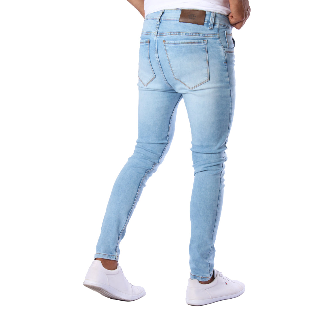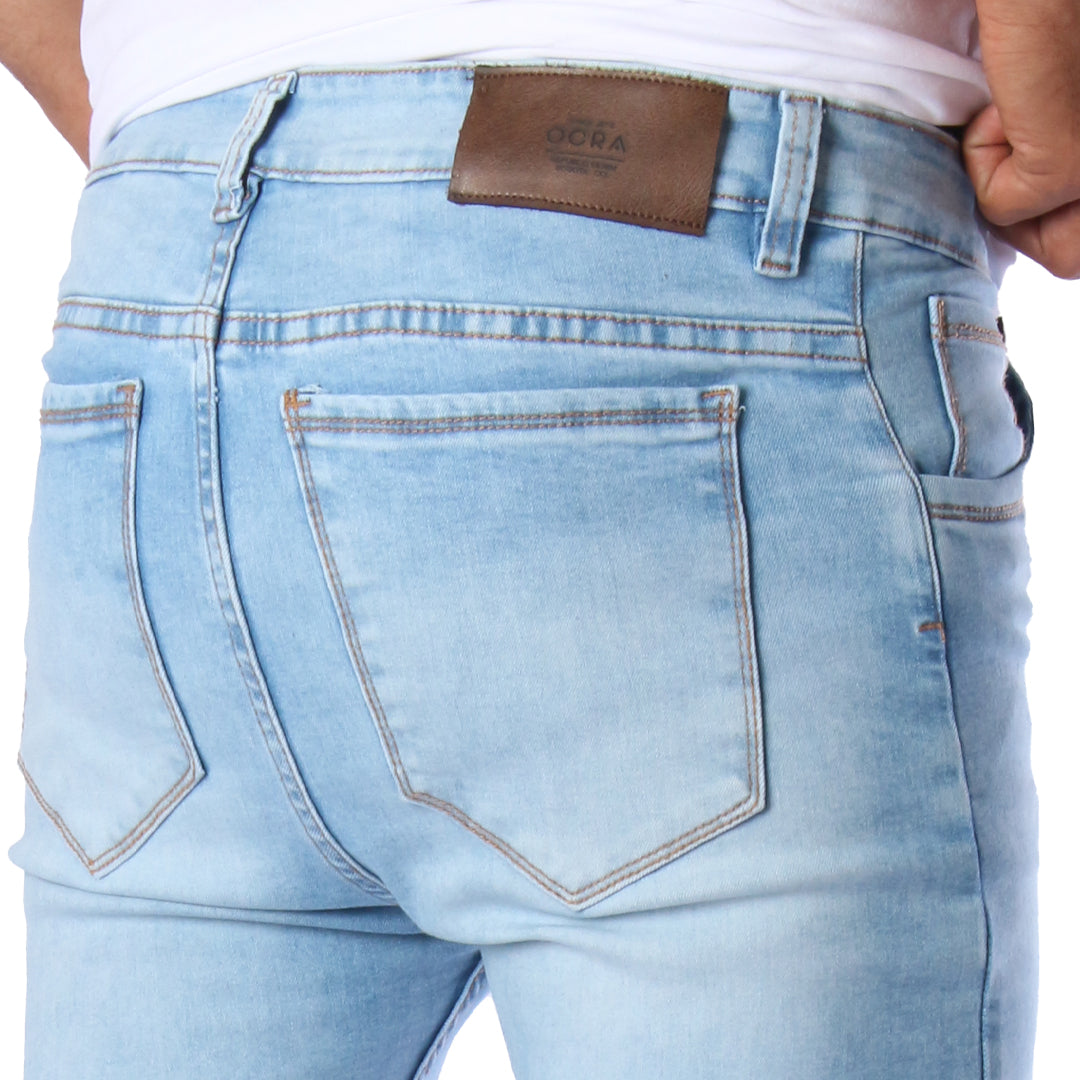 Descubre el estilo y comodidad de nuestros jeans skinny azul claro para hombre, modelo CL2241. Confeccionados en denim premium de alta durabilidad, estos jeans ofrecen un ajuste skinny fit que resalta la figura y aporta un look moderno y urbano.